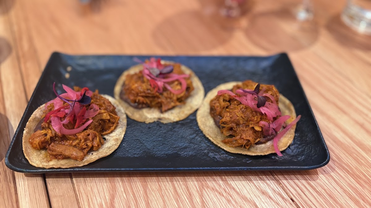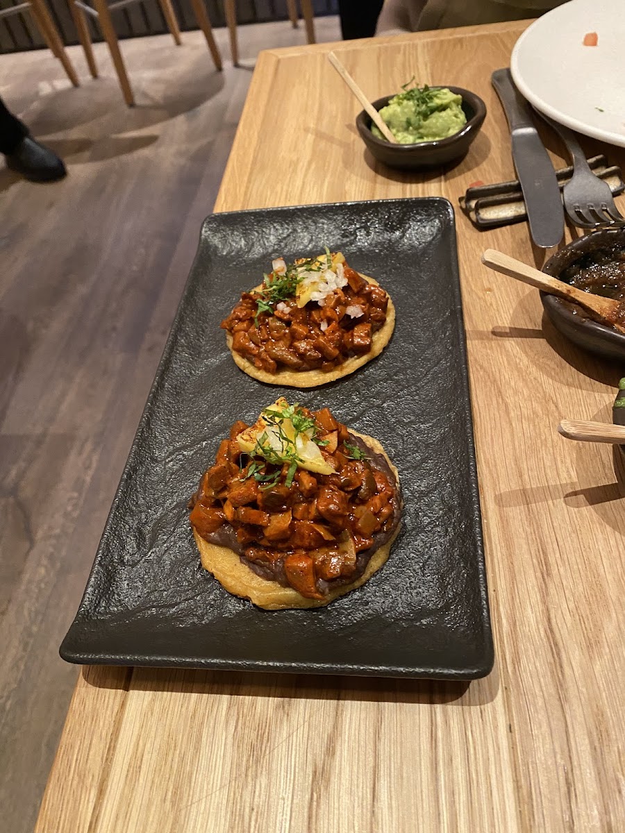 Of the all dishes we had we enjoyed the panuchos yucateros the most. Great combo of refined beans and shredded pork. Excellent guacamole although perhaps a tad too salty. Cocktails were super too. Food was served at intervals which meant we could savour each dish before the next arrived. Service great. The restaurant was full but not noisy.